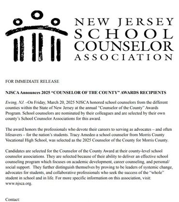 On April 30, 2025 the Morris County Council of Education Associations (MCCEA) awarded Tracy Amedeo of the Morris County Vocational School District and founder of Academic Mentoring, LLC the 2025 Friend of Education Award. She was one of three recipients of the prestigious award.